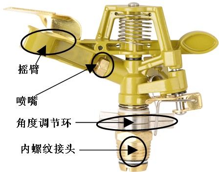 产品介绍:摇臂喷头是一种常用的露天场所喷灌设备,是灌溉设备中重要的灌水器。广泛用于大田喷灌、露天苗圃、果菜园和园艺场等场所,是使用最广泛、性能最稳定的喷头之一。